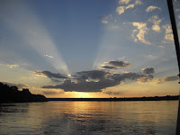 After that it was more relaxing (finished my book - highly recommended Mad Blood Stirring by Simon Mayo) and then we`d been invited to have one more cruise on the river and a meal at the Lodge which we felt it would have been impolite to decline.......